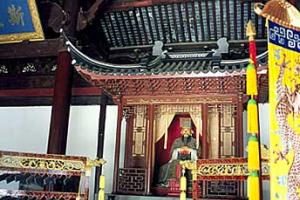 嘉定孔庙始建于南宋嘉定十二年(1219年),素有“吴中第一”之称。孔庙内设嘉定区博物馆。门前为东西甬道,甬道东西均有牌坊,名为育才坊和兴贤坊,棉队孔庙大门的牌坊叫仰高坊。沿汇龙潭有石柱,柱顶上刻有姿态各异的72只狮子,用于代表孔子72个最优秀的学生。进们是潘池,在往前是大成门。大成们前有龟座7只,背